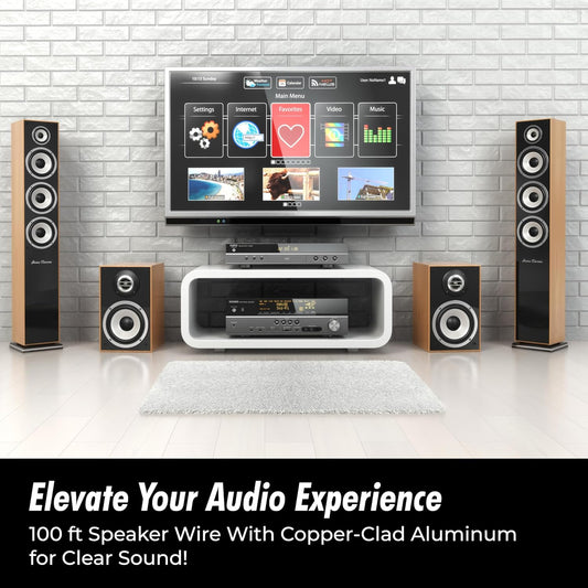 14 Gauge Speaker Wire 100 Ft Cable, 14 AWG Speaker Wire Cable, True Spec Soft Touch Cables | Great Use for Car Audio, Stereos, Home Theater Speakers, Surround Sound